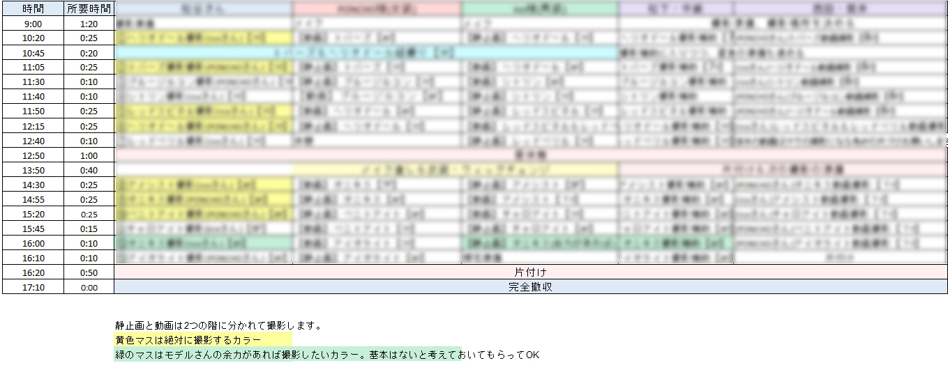 • 撮影日時・場所: スタジオの住所や入館方法。